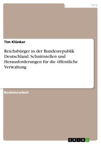 Tim KlünkerBachelorarbeit aus dem Jahr 2022 im Fachbereich Jura - Öffentliches Recht / Staatsrecht / Grundrechte, Note: 2,7, Fachhochschule für öffentliche Verwaltung Nordrhein-Westfalen; Münster, Sprache: Deutsch, Abstract: Setzt man sich intensiver mit der Thematik der Reichsbürgerbewegung auseinander, drängt sich der Gedanke auf, wie die öffentliche Verwaltung in Deutschland mit den Herausforderungen, die durch diese Bewegung entstehen, umgeht. Folglich wird sich die Bachelorthesis mit dem folgenden Thema auseinandersetzen: Reichsbürger in der Bundesrepublik Deutschland – Schnittstellen und Herausforderungen für die öffentliche Verwaltung.Bei der Arbeit erscheint es zunächst sinnvoll, auf bereits vorhandene Literatur und Studien zurückzugreifen, da eine Durchführung eigener empirischer Methoden aus formalen Gründen keine repräsentativen Ergebnisse liefern würde.Im Rahmen der Bachelorarbeit soll darauf eingegangen werden, woher die Reichsbürgerbewegung kommt, wer die Reichsbürger überhaupt sind und ob diese eine potenzielle Gefahr für die Demokratie und damit verbunden für die Organe und Institutionen der öffentlichen Verwaltung darstellen. Es werden verschiedene öffentlich wirksame Vertreter der Reichsbürgerbewegung vorgestellt und ein Bezug zum (Rechts-)Extremismus hergestellt. Im Nachfolgenden wird sich mit den Grundpfeilern der Reichsbürgerbewegung und den damit verbunden Herausforderungen für die öffentliche Verwaltung beschäftigt. Dafür wird zunächst der Umgang der Reichsbürger mit der öffentlichen Verwaltung thematisiert, wie eine Durchsetzung der eigenen Ziele gelingen soll und anschließend herausgestellt, welche Maßnahmen der öffentlichen Verwaltung zur Verfügung stehen und welche Handlungsoptionen die öffentliche Verwaltung hat. Abschließend werden zentrale Erkenntnisse präsentiert und vor dem Hintergrund zukünftiger erwarteter Entwicklungen diskutiert.