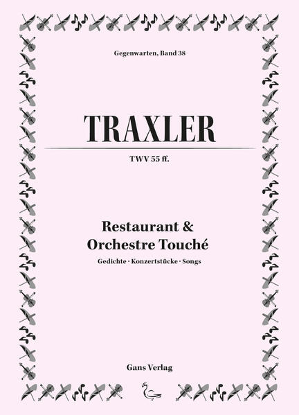 In 'Restaurant & Orchestre Touché' zeigen sich unterschiedliche poetische Gestalten - Gedichte, Konzertstücke, Songs - die auf dem Vertrauen in den Moment ihrer Entstehung fußen und sich in Form und Klang in mannigfaltige musikalische Richtungen bewegen. Durch zahlreiche Leseauftritte und Aufführungen Mathias Traxlers haben sich die Texte in ihrer fertigen geschriebenen Form konkretisiert. Das Buch gliedert sich in zwei Abteilungen, die durch Klang und Echo miteinander verbunden sind. In der ersten findet sich ein Reigen von Texten, die den Charakter von Songs und Couplets haben und mit Motiven aus der lyrischen Tradition, von der Antike (Vergil) über den Minnesang bis in die heutige Zeit (Horváth, Jaccottet), spielen. Die zweite Abteilung ist ein großangelegtes Narrativ, das in eine Vielzahl erzählerischer Genres eintaucht und weitgehend aus Transkriptionen improvisatorisch eingesprochener Passagen - entlang von Werken klassischer Musik - entstanden ist. Dieser Teil hat den Charakter eines Konzertstückes, für ein lautes und mit Spannungsbögen gestaltetes Lesen. Erzählt wird darin die Geschichte zweier Figuren, die sich dem Leser immer wieder entziehen, die aus einer unbekannten Welt ausgesandt wurden und unterwegs sind, gemeinsam mit anderen, um Klänge und Instrumente zu sammeln. 'Willst du das aufnehmen?', fragt die eine Figur die andere. Die andere schüttelt den Kopf: 'Nein, nichts aufnehmen.' Weil sie nicht durch Aufnehmen sammeln.