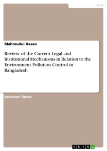 Bachelor Thesis from the year 2012 in the subject Law - Public Law / Miscellaneous, grade: A, University of Dhaka (Department of Law), course: Environmental Law of Bangladesh, language: English, abstract: Increasing industrialization and lack of waste treatment is leading to major environmental pollution problem in many parts of Bangladesh, impacting on both aquatic and non-aquatic ecosystems and the population who depend on them for their livelihood activities. Environment, the message of which has a strong correlation with the subtle human existence, are a burning issue around the world. Every country desires to have a better environment for which all possible efforts are being adopted to make the people aware and educated about the environment, to control unwise use of resources, to keep environment pollution free. Legal framework is also being made wherever necessary, with an appropriate augmentation of individual country efforts, supported and appreciated by international communities. Now relevant aspects of environment policies are being considered as a sectoral component of all major international treaties. Thus, now a day, enforcing congenial environment condition free from pollution has become a pre-condition for all development activities.