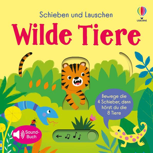 Der Papagei ruft "KRAH!" und der Elefant "TÖRÖÖ!" Bewege die Schieber hin und her, dann siehst und hörst du bei jeder Bewegung ein anderes der acht wilden Tiere!