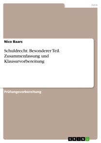 Nico BaarsPrüfungsvorbereitung aus dem Jahr 2019 im Fachbereich Jura - Zivilrecht / BGB AT / Schuldrecht / Sachenrecht, Note: 14, Universität Osnabrück, Sprache: Deutsch, Abstract: Dieses Werk befasst sich mit den Grundlagen des Schuldrechts: Besonderer Teil. Es fasst kurz und prägnant den wichtigsten Stoff zusammen. Dabei konzentriert es sich auf den ersten Teil des BT, das bedeutet auf die drei wichtigsten vertraglichen Schuldverhältnisse: Kaufvertrag, Werkvertrag und Schenkungsvertrag.