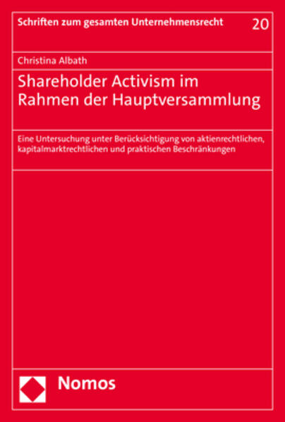 Das Werk behandelt das Phänomen des "Shareholder Activism" im Kontext der Hauptversammlung. Angesichts der Aktualität dieses Phänomens auch im deutschen Kapitalmarkrecht ist die Studie von großer praktischer Bedeutung für Rechtsberater, Unternehmen und Aktionäre. Es wird aufgezeigt, wie aktivistische Aktionäre die Hauptversammlung zur Umsetzung von konkreten Maßnahmen nutzen können. Die Autorin erarbeitet eine Begriffsbestimmung des "Shareholder Activism" und berücksichtigt dabei den amerikanischen Ursprung des Phänomens. Sie untersucht, welche Rechte aktivistischen Aktionären zur Verfügung stehen und erarbeitet die rechtlichen sowie praktischen Grenzen im Aktien- und Kapitalmarktrecht. Die Untersuchung schließt mit einem Ausblick auf die Praxis ab.