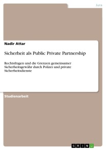 Nadir AttarStudienarbeit aus dem Jahr 2010 im Fachbereich Jura - Öffentliches Recht / Verwaltungsrecht, Note: 2,7, Helmut-Schmidt-Universität - Universität der Bundeswehr Hamburg, Veranstaltung: Neue Konzepte der Inneren Sicherheit im Spiegel des öffentlichen Rechts, Sprache: Deutsch, Abstract: Schon vor knapp 70 Jahren erklärte der Organisator der preußischen Schutzpolizei, Wilhelm Abegg:„Polizei und privater Wachdienst sind nicht einander entgegengesetzte oder gar ausschließliche, sondern auf gedeihliche Zusammenarbeit zum Wohle der Allgemeinheit angewiesene Einrichtungen.“ Mag diese Einschätzung zu der damaligen Zeit noch mutig gewesen sein, so steht sie heutzutage außer Zweifel. Blickt man auf die jährlichen Umsatzzahlen des privaten Sicherheitsgewerbes, so steht es außer Frage, dass wir es hier gegenwärtig mit einer so genannten Boombranche zu tun haben. Private Sicherheitsdienste liegen im Trend und ein Ende des Wachstumspotenzials dieser Branche ist gegenwärtig noch nicht abzusehen. Obschon es durchaus ein reizvolles Thema für eine Hausarbeit wäre, wird sich diese Ausarbeitung nicht mit der Frage beschäftigen, worin die Gründe für den Erfolg dieser Branche bestehen oder wie ein solches Unternehmen von innen aufgebaut ist. Vielmehr wird sich mit der ebenfalls aktuellen und dringend gebotenen Frage beschäftigt werden, inwiefern private Sicherheitsunternehmen mit der Polizei zusammenarbeiten können. Dass es eine solche Zusammenarbeit schon seit längerem gibt, dürfte jedem Reisenden aufgefallen sein, der die Sicherheitskontrollen an deutschen Flughäfen oder Bahnhöfen erlebt hat. Dort sieht man in erster Linie private Dienstleister die rudimentären Sicherheits- und Ordnungsaufgaben übernehmen, während die Polizei erst im weiteren Verlauf und bei Bedarf hinzugezogen wird. Doch gibt unsere Rechtsordnung eine solche gemeinsame Aufgabenwahrnehmung überhaupt her und wo liegen möglicherweise die Grenzen dieser Zusammenarbeit? Immerhin fehlt bis heute ein spezielles Sicherheitsgewerbegesetz, durch welches Kompetenzen und Handlungsfelder klar abgegrenzt würden. Wo lauern eventuell mögliche Gefahren einer solch engen Zusammenarbeit?