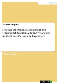 Seminar paper from the year 2018 in the subject Business economics - Business Management, Corporate Governance, grade: 80, University of South Wales (Business School), course: Strategic Operational Management and Operational Research, language: English, abstract: This paper consists of an end module assessment for the strategic operations management and operational research. It comprises of two important parts which respectively consist of reflective learning and critical analysis for a position of operations manager. In the first part the learner attempts to critically reflect on his learning, focusing on how the course enabled him to improve his knowledge of operations management and coordination skill. Although coordination involves other more skills such as communication, by applying different learning approaches, it is clear that the learner's skills have improved considerably through this course, which allowed him to critically evaluate and improve the process performance both in the field of operations and in a larger organizational environment.On the other hand, the second part of this paper attempts to use knowledge gained from the course to critically analyze a learner’s chosen job description for an operations manager which is attached on this work. We focused on analyzing the challenges that the incumbent is likely to face in the course of his work. Although forecasting, quality management, sustainability, market systems and resource utilization are important operational issues for the Operations manager, a number of challenges has been analyzed and solutions proposed in order to mitigate these challenges.