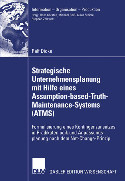 Strategische Planung basiert auf Prämissen, die sich wegen unvollständiger Informationen zum Planungszeitpunkt und wegen veränderter Präferenzen im Zeitverlauf als nicht zutreffend erweisen können. Ziel eines Unternehmens muss sein, möglichst schnell und Ressourcen sparend auf Änderungen von Prämissen zu reagieren und gleichzeitig eine hohe Planungsqualität zu gewährleisten. Ralf Dicke formalisiert in Prädikatenlogik einen Kontingenzansatz zur Strategieentwicklung, der die Basis für eine Anpassungsplanung nach dem Net-Change-Prinzip bildet. Er stellt das Konzept eines Assumption-based-Truth-Maintenance-Systems (ATMS) aus dem Bereich der künstlichen Intelligenz vor und untersucht, wie es sich zur Unterstützung der Anpassungsplanung nutzen lässt. Seine detaillierte Beschreibung des Kontingenzansatzes zeigt, wie Elemente einer strategischen Planung konkret miteinander verknüpft werden können.