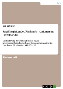 Iris SchülerStudienarbeit aus dem Jahr 2011 im Fachbereich Jura - Zivilrecht / Arbeitsrecht, Note: 1,0, Bayerische Julius-Maximilians-Universität Würzburg, Sprache: Deutsch, Abstract: In der Folge des Urteils des Bundesverfassungsgerichtes vom 22.09.2009 zu streikbegleitenden Arbeitskampfmaßnahmen im Einzelhandel, etablierte und legitimierte sich eine neue Intensitätsstufe des Arbeitskampfes, die sogenannte arbeitskampfbezogene „Flashmob“-Aktion. Hierbei handelt es sich um plötzliche, kurzzeitige Zusammentreffen von Individuen, welche sich mittels elektronischer Kommunikation koordinieren, um einem laufenden Arbeitskampf Nachdruck zu verleihen. Das BAG klassifiziert Flashmobs als „nicht generell unzulässig“ und untermauert diese Einstufung mit der Aussage „Der damit verbundene Eingriff in den Gewerbebetrieb des Arbeitgebers kann aus Gründen des Arbeitskampfes gerechtfertigt sein“ . Im Gegensatz zum traditionellen Arbeitskampfmittel des Streiks, bei dem der Betrieb durch die Zurückhaltung der Arbeitskraft passiv gestört wird, veranlassen Flashmobs eine aktive Störung. Sie dienen der Förderung des Abschlusses von Tarifverträgen und implizieren eine unterstützende Wirkung hinsichtlich der Durchsetzung von Arbeitskampfzielen. Die Anwendung von Flashmobs steht unter dem Schutz der Betätigungsfreiheit der Gewerkschaften, welche auf Art. 9 Abs. 3 GG zurückzuführen ist. Ferner fällt in gleicher Weise die Wahl der Arbeitskampfmittel in dessen Schutzbereich. Es ist jedoch der Grundsatz der Verhältnismäßigkeit mit seinen Teilaspekten Geeignetheit, Erforderlichkeit und Angemessenheit zu beachten. Um diesen hinreichend bewerten zu können, ist die Möglichkeit der Verteidigung auf Arbeitgeberseite zu überprüfen. Das BAG verweist hierbei auf die Optionen der Ausübung des Hausrechts sowie der kurzfristigen Betriebsschließung. Doch stellen diese Gegenmaßnahmen realistische Reaktionsmöglichkeiten dar? Die Meinungen divergieren jedenfalls stark. Auf Grund dessen beschäftigt sich diese Hausarbeit mit der Leitfrage nach der Legitimität von Flashmobs. Der erste Teil befasst sich mit der begrifflichen Bestimmung und Abgrenzung zu anderen Streikaktionen. Im Mittelpunkt steht hierbei die Differenzierung vom Arbeitskampfmittel des Streikes. Im zweiten Teil werden die Anerkennung des Flashmobs als Arbeitskampfmittel und seine Grenzen erörtert. Zunächst wird die Interpretation der koalitionsspezifischen Handlungsweisen im Sinne des Art. 9 Abs. 3 GG dargelegt. Im Anschluss wird der Verhältnismäßigkeitsgrundsatz als Maßstab zur Beurteilung von Arbeitskampfmitteln aufgezeigt.Den dritten Teil bildet die kritische Auseinandersetzung mit der Legitimität von Flashmobs.