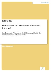 Sabine DüxInhaltsangabe:Gang der Untersuchung:Diese Arbeit gliedert sich in fünf Teilbereiche. Im Rahmen des ersten Kapitels wird die allgemeine Hintergrundproblematik des Arbeitsthemas vorgestellt und anschließend auf das Fallbeispiel der Tourismusbranche übertragen. Der Leser wird mit den grundsätzlichen Charakteristika dieses exemplarisch herangezogenen Wirtschaftszweigs vertraut gemacht, indem der Tourismusmarkt mit seinen Akteuren, Besonderheiten des touristischen Produktes sowie der Dienstleistungs-charakter der Branche herausgearbeitet wird. Aktualität erlangt die gewählte Themenstellung durch die derzeitigen Entwicklungen innerhalb des Reisesektors, welche abschließend behandelt und eine Ursache für die gegenwärtigen Bewegungen im Handel dargestellt wird. Kapitel 2 befaßt sich mit den theoretischen Grundlagen dieser Arbeit. Nach einer Einführung in das Gedankengut der Informationsökonomie werden allgemeine Funktionen des Handels herausgestellt. Auf dritter Ebene werden Spezifika des Reisebüros in seinem Dasein als Handelsbetrieb formuliert. Nach einer begrifflichen Klärung wird auf seine charakteristischen Handelsfunktionen eingegangen und ein Bezug zu den einführend behandelten informationsökonomischen Erkenntnissen hergestellt. Durch die Positionierung der im Reisebüro nachgefragten Produkte und Leistungen im informationsökonomischen Dreieck wird auf die Unsicherheitsprobleme touristischer Güter hingewiesen.In Kapitel 3 wird das Internet als Repräsentant der Neuen Medien vorgestellt. Nach einer einleitenden Begriffsbestimmung wird auf Basis aktueller Nutzerdaten und zukünftiger Entwicklungspotentiale seine allgemeine Relevanz, insbesondere seine Funktion als Distributionsinstrument, herausgestellt. Eine Übertragung der allgemeinen Erkenntnisse auf den Handel macht den sich hier abzeichnenden Wandel erstmals deutlich und weist auf die potentielle Substitutionsgefahr hin, die das Internet für einige Handelsbetriebe heraufbeschwört. Unter Berücksichtigung des Fallbeispiels erfolgt anschließend eine Eignungsprüfung touristischer Güter für den Online-Vertrieb. Die derzeitige Nutzung von touristischen Internetangeboten weist auf die Veränderungen hin, mit denen das Reisebüro aufgrund der zunehmenden Internetausbreitung gegenwärtig zu kämpfen hat. Kapitel 3.4 stellt die derzeitige Situation der Reisebüros zusammenfassend dar und dient als Überleitung zu Kapitel 4, in welchem ?Vertrauen? als Erklärungsgröße für ein Überleben der Reisebüros […]