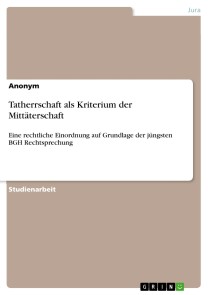 Studienarbeit aus dem Jahr 2019 im Fachbereich Jura - Strafrecht, Note: 1,0, , Veranstaltung: ProSeminar (Modul 1.4), Sprache: Deutsch, Abstract: Im Rahmen dieser Arbeit wird an einem zuvor skizziertem Beispiel herausgearbeitet, ob ein als Mittäter verurteilter Täter sämtliche Tatbestandsvoraussetzungen in derselben Qualität verwirklicht haben muss, wie der Täter selbst, oder wie hoch der (qualitative) Anteil am Tatgeschehen tatsächlich sein muss, um ihn rechtssicher als Mittäter und nicht nur als Beteiligten, beispielsweise als Anstifter oder Gehilfen, verurteilen zu können. Schwerpunkt dieser Rechtsproblematik und damit der vorzulegenden Arbeit ist das Element der Tatherrschaft als Kriterium für die Annahme der Mittäterschaft. Die Fragestellung der Arbeit widmet sich damit auch aus aktuellem Anlass einem rechtsdogmatischen "Klassiker", dem der BGH durch den Beschlussaus dem Jahre 2017 neue Dynamik verliehen hat und der, wie diese Arbeit ebenfalls aufzeigen wird, damit gewiss noch nicht nachhaltig erledigt ist.