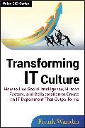 Practical, proven guidance for transforming the culture of any IT department As more and more jobs are outsourced, and the economy continues to struggle, people are looking for an alternative to the greed-driven, selfish leadership that has resulted in corporations where the workers are treated as interchangeable parts. This book shows how the human factors can be used to unlock higher returns on human capital such that workers are no longer interchangeable parts, but assets that are cared about and grown. Refreshingly innovative, Transforming IT Culture shows how neuroscientific and psychological research can be applied in the IT workplace to unleash a vast pool of untapped potential. * Written by an expert on IT culture transformation * Considers the widespread "cultural blindness" in business today, and how it can be addressed * Draws on the author's repeated success transforming IT divisions across major corporations by applying the human factors * Explains why social intelligence, human factors, and collaboration are the source of harmony, shared learning, mutual respect, and value creation Employees want positive change in business, something to stop the downward spiral we are on, both financially and emotionally. Transforming IT Culture shows how the essential ingredient to any high performing IT department is a culture where employees are valued and managed to their strengths. Using the Information Technology profession as a lens through which we can understand knowledge worker productivity and how to seriously improve it, this important new book reveals why Collaborative Social Systems are essential to every organization.