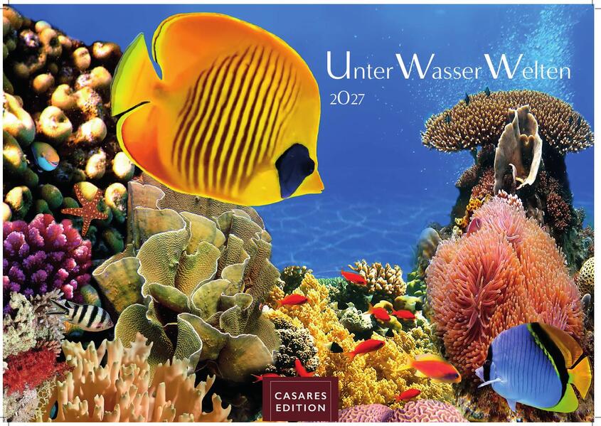 Tauchen Sie ein in die faszinierende Welt der tropischen Meere mit unserem Kalender " Unterwasser Welten 2027". Dieser wunderschöne Wandkalender bietet Ihnen atemberaubende Fotografien von lebendigen Korallenriffen, exotischen Fischarten und der vielfältigen Unterwasserflora, die Sie Monat für Monat begeistern werden. Ideal für Meerestierliebhaber, Taucher und Naturschutz-Befürworter. 12 faszinierende grossformatige Fotos, gedruckt auf schwerem 170g Papier, in Spitzenqualität. Auf der Rückseite des Kalenders befindet sich ein Motivinformationsblatt mit allen Motiven. Das Kalendarium ist sehr klar und übersichtlich. Gebunden ist der Kalender mit Spiralbindung und er ist mit einem stabilen Aufhänger versehen