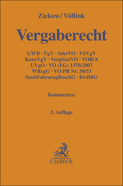Zum Werk Der Kommentar stellt das gesamte Vergaberecht umfassend und praxisorientiert dar: Neben den Regelungen des Teils 4 des GWB sind alle vergaberechtlichen Verordnungen inkl. nunmehr der VergStatVO kommentiert. Daneben erläutert das Werk die Vergabe- und Vertragsordnung für Bauleistungen (Teil A), die Unterschwellenvergabeordnung (UVgO), die VO (EG) 1370/2007 und die neuen Vorschriften des WRegG, SaubFahrzeugBeschG sowie des BwBBG. Ein praxisnaher Überblick über die preisrechtlichen Bestimmungen der VO PR Nr. 30/53 rundet das Werk ab. Vorteile auf einen Blick