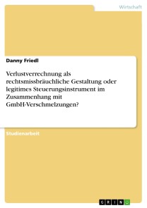 Danny FriedlStudienarbeit aus dem Jahr 2023 im Fachbereich BWL - Rechnungswesen, Bilanzierung, Steuern, Note: 2,0, AKAD University, ehem. AKAD Fachhochschule Stuttgart, Veranstaltung: Besteuerung von Kapital- und Personengesellschaften, Sprache: Deutsch, Abstract: Diese Arbeit zielt darauf ab, zu erforschen, inwiefern Verlustvorträge im Rahmen einer Verschmelzung von GmbHs steuerlich genutzt werden können und welche Begrenzungen hierbei durch § 42 AO auferlegt werden. Zusätzlich wird das spezifische Urteil des BFH vom 17.11.2020 (I R 2/18) analysiert, um dessen Aussagen und Auswirkungen zu verstehen und die Entwicklung der Rechtsprechung in Bezug auf die Verlustverrechnung bis zu diesem Urteil nachzuvollziehen. Es existieren diverse steuerliche Gestaltungsoptionen, die dazu dienen, die Steuerlast innerhalb der gesetzlichen Grenzen zu minimieren. Eine solche Option ist die Nutzung von Verlustvorträgen einer GmbH im Kontext einer Verschmelzung zur Reduzierung der Steuerlast. Die Frage, die sich dabei stellt, ist, ob diese Praxis der Verlustverrechnung als rechtmäßiges Steuerinstrument oder als Missbrauch des Rechts angesehen wird. Wie hat sich die juristische Beurteilung dieser Fragestellung im Laufe der Zeit verändert?Die Arbeit beginnt mit einem einführenden Abschnitt. Im zweiten Teil werden die wesentlichen Grundlagen dargelegt, einschließlich eines Überblicks über relevante gesetzliche Bestimmungen und der Definition grundlegender Begriffe. Der Hauptteil, Abschnitt 3, konzentriert sich auf die Untersuchung der Entwicklung der Rechtsprechung im Kontext der Abgabenordnung sowie des Körperschaftssteuer- und Umwandlungssteuergesetzes. Im abschließenden vierten Teil wird die Arbeit zusammengefasst und ein Fazit gezogen. Darüber hinaus beinhaltet dieser Teil eine kritische Reflexion der Ergebnisse und einen Ausblick auf mögliche zukünftige Entwicklungen.