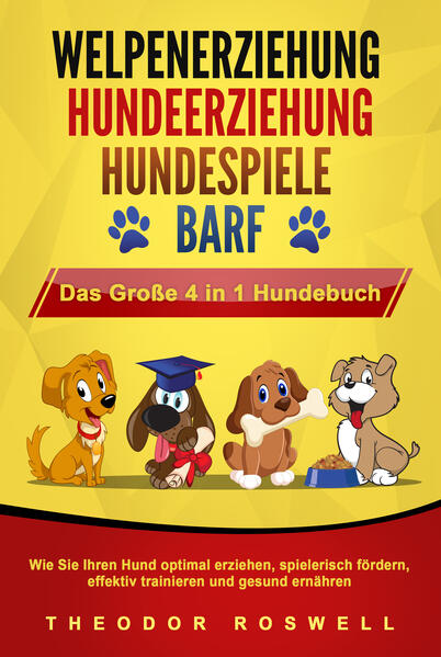 Welpenerziehung, Hundeerziehung, Hundespiele, Barfen: Dieses 4 in 1 Buch ist das Rundum-sorglos-Paket für jeden aktuellen oder künftigen Hundebesitzer!