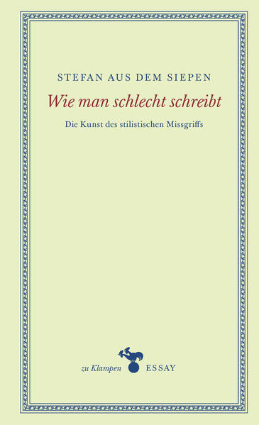 Stilkunden beschäftigen sich in der Regel mit dem, was als guter Stil gilt, der schlechte findet allenfalls am Rande Erwähnung. Dabei ist er, statistisch gesehen, viel verbreiteter als der gute und verdiente schon deshalb größere Aufmerksamkeit. Außerdem hat er in seinen mannigfaltigen Erscheinungsformen durchaus eigene, wenn auch meist unbeabsichtigte Reize. Stefan aus dem Siepen nimmt sich ihrer mit der Leidenschaft eines maliziösen Genießers an. Erzählerische Nachlässigkeiten, überfrachtete Sätze, missglückte Anfänge, preziöse Wortwahl, sprachliche Vulgaritäten, schiefe Metaphern, raunende Titel, ungelenke Intimszenen, ... - sämtliche vorgestellten stilistischen Patzer stammen aus den Federn großer Schriftsteller. Selbst diese waren gegen gelegentliche Ausrutscher nicht gefeit. Stefan aus dem Siepen legt mit seiner spiegelverkehrten Stilkunde keine Anthologie pedantisch kompilierter literarischer Fehlgriffe vor, vielmehr erweist er dem Geglückten seine Reverenz. Denn die Reflexionen über das sprachliche Pappmaché handeln immer auch von den edleren Materialien der Literatur.
