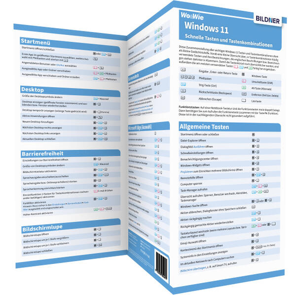 Diese Zusammenstellung nützlicher Windows 11 Tasten und Tastenkombinationen dient als kleine Gedächtnishilfe. Egal, ob Sie Windows 11 allgemein sicherer beherrschen lernen wollen, oder nur schneller durch Microsoft-Edge-Tabs navigieren möchten - ob auf dem Desktop oder während der Textbearbeitung, diese praktische Faltkarte hilft Ihnen in allen Bereichen von Windows 11.