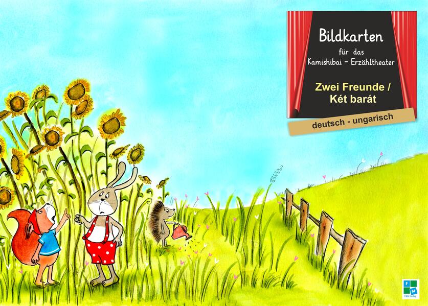 Bildkarten der Bilderbuchgeschichte "Zwei Freunde" für das Kamishibai-Theater in deutsch/ungarisch - 13 Bildkarten im DINA3 - Format (29,7 x 42,0 cm), auf festem 300g-Bilderdruck - farbig illustriert - passend für das Kamishibai-Theater - in praktischer DINA3-Tasche zur Aufbewahrung - ideal zur Sprachförderung - kompletter Text auf separater Seite zum Vorlesen - ideale Ergänzung zum Kniebuch Die Bildkarten eignen sich mit ihrem spielerischen Ansatz und der Verbindung vom Zuhören und Sehen perfekt für die Sprachförderung in der Kita oder zum Zweitspracherwerb.. Die Bildkarten werden in das Kamishibai gesteckt und beim Vorlesen des Textes ausgewechselt. Danach können sie auch im Gruppenzimmer aufgehängt werden, um weitere Aktionen zu gestalten. Thema Streit: Das Eichhörnchen Elmar und der Hase Hektor sind traurig. Dort, wo sie leben, ist alles einsam und vertrocknet. Es gibt auch nichts mehr zu essen. Also beschließen die beiden Freunde sich ein neues Zuhause und neue Freunde zu suchen. Aber wohin können sie gehen? NEU - Jetzt auch als KNIEBUCH erhältlich! Alle Kamishibais und Kniebücher sind in 27 verschiedenen Sprachen erhältlich: