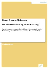 Die Belegarbeit Frauendiskriminierung in der Werbung zeigt Darstellungsformen der Frau in den Medien auf und vergleicht die der heutigen Zeit mit Illustrationen des vergangenen Jahrhunderts. Hinterfragt werden gesellschaftliche Hintergründe, so die patriarchalische Gesellschaftsstruktur sowie die herrschende Wirtschaftsordnung der sozialen Marktwirtschaft. Da die Verhältnisse von Männer- und Frauenbildern sowie die Voraussetzungen für deren Entstehen stets im gesellschaftlichen Kontext betrachtet werden müssen und damit die Akzeptanz der frauendiskriminierenden Werbung erklärt werden kann. Die Autorin zeigt negative Folgen der in der Werbung vermittelten traditionellen Geschlechterrollen, der Schönheitsideale sowie der Frau als Lustobjekt für die Gesellschaft auf. Beleuchtet werden die Auswirkungen auf Jugendliche, Frauen und Männer sowie Werte und Normen der Gesellschaft wie auch die Bedeutung für Gleichstellungsbemühungen. Es werden abschließend die sozial- und wahrnehmungspsychologischen Grundlagen zum Verständnis der Werbewirkung betrachtet. Zusätzlich hat die Autorin die Rechtsvorschriften und Verhaltensregeln der Werbepraxis kritisch in Augenschein genommen. Insgesamt werden Zusammenhänge zwischen den einseitigen Frauendarstellungen in der Werbung und den Verhaltensweisen der Geschlechter im Alltag erklärt.