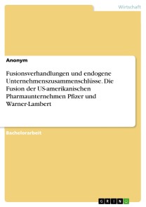 Fusionsverhandlungen und endogene Unternehmenszusammenschlüsse. Die Fusion der US-amerikanischen Pharmaunternehmen Pfizer und Warner-Lambert
