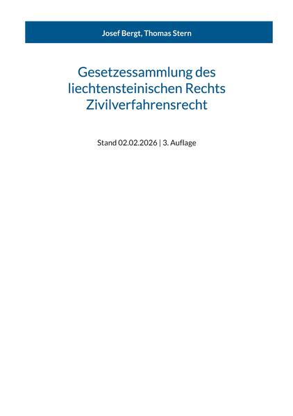 Die liechtensteinische Gesetzessammlung zum Zivilverfahrensrecht enthält ua folgende Gesetze: Jurisdiktionsnorm (JN) Einführungsgesetz zur ZPO (EGZPO) Zivilprozessordnung (ZPO) Ausserstreitgesetz (AussStrG) Exekutionsordnung (EO) Gerichtsgebührengesetz (GGG) Gerichtsorganisationsgesetz (GOG) Insolvenzordnung (IO) Tarif für Rechtsanwälte (RATG) Tarifansätze für Rechtsanwälte (RATV) Rechtssicherungs-Ordnung (RSO) Zustellgesetz (ZustG) Zielgruppen: Juristen, Behörden & Gerichte, Wissenschafter, sonstige Interessenten.