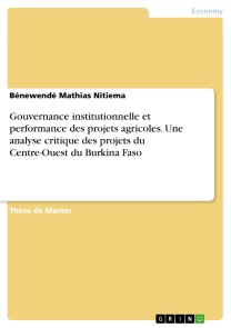 Thèse de Master de l’année 2013 dans le domaine Gestion d'entreprise - Direction d'entreprise, Management, Organisation, , cours: Soutenace, langue: Français, résumé: L’objectif général est de susciter une performance effective et efficace des projets agricoles dans la gouvernance, surtout en sa composante institutionnelle. Pour atteindre cet objectif, les hypothèses ci-après ont été identifiées: la mauvaise gouvernance peut constituer un handicap pour l’amélioration de la performance des projets agricoles; la pratique de la gouvernance institutionnelle a un effet positif sur la performance des projets agricoles; la recherche de la performance des projets agricoles permet d’améliorer la bonne gouvernance. Le bilan de la gestion de ces différents projets et programmes de développement et leurs effets/impacts réels révèle des réussites incontestables mais aussi des insuffisances et même des échecs. C’est dans cette perspective qu’a été instaurée une nouvelle approche de développement fondée sur la planification, la programmation et la gestion axée sur les résultats des actions dont les projets publics constituent des instruments déterminants. Ainsi, de façon particulière, le défi majeur pour toute nation est d’optimiser la performance de ses projets afin qu’ils constituent des instruments réels de développement socio-économique. Comment donc améliorer la gouvernance des projets publics afin d’assurer l’optimisation de la performance de ces projets? Telle est la préoccupation majeure qui fait l’objet de cette recherche à travers l’étude du thème "Gouvernance institutionnelle et performance des projets: une analyse critique des projets agricoles dans le Centre-Ouest".Pour tester ces hypothèses, un questionnaire a été élaboré et adressé à un échantillon constitué de gestionnaires et coordonnateurs de projets. L’analyse des résultats d’enquête effectuée sur cet échantillon a permis d’aboutir aux conclusions suivantes: primo, la bonne gouvernance peut être assimilée à la bonne gestion à tous les niveaux de prise décision; secundo, qu’elle a un impact positif sur la performance des projets agricoles et que tertio, la recherche de la performance contribue parfois à l’amélioration de la bonne gouvernance des projets agricoles. Au regard de ces résultats, des recommandations ont été formulées pour améliorer la gouvernance des projets qui apparaît comme une condition sine qua non à l’optimisation de la performance des projets agricoles dans le but d’assurer le développement durable des nations en général et du Burkina Faso en particulier.