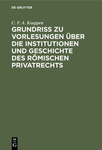 C. F. A. KoeppenKeine ausführliche Beschreibung für "Grundriss zu Vorlesungen über die Institutionen und Geschichte des römischen Privatrechts" verfügbar.<br /><br />Das E-Book Grundriss zu Vorlesungen über die Institutionen und Geschichte des römischen Privatrechts wird angeboten von De Gruyter und wurde mit folgenden Begriffen kategorisiert:<br />