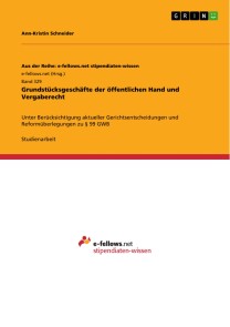 Studienarbeit aus dem Jahr 2008 im Fachbereich Jura - Öffentliches Recht / VerwaltungsR, Note: 10, Universität Bielefeld, Sprache: Deutsch, Abstract: Die vorliegende Arbeit befasst sich mit dem Verhältnis von Grundstücksgeschäften der öffentlichen Hand zum europäischen Vergaberecht. Zunächst wird ein kurzer Überblick über den vergaberechtlichen Anwendungsbereich gegeben, der die Struktur der öffentlichen Auftragsvergabe sowie der Pflicht zur europaweiten Ausschreibung verdeutlichen soll. Der Hauptteil der Arbeit beinhaltet schließlich die Prüfung der Anwendbarkeit vergaberechtlicher Vorschriften auf nationale Grundstücksgeschäfte der öffentlichen Hand. Im Vordergrund steht die Frage, inwieweit bestimmte Konstellationen von Grundstücksgeschäften der öffentlichen Hand europaweit ausschreibungspflichtig sind. Zur Vollständigkeit wird auch jeweils kurz auf die Ausschreibungspflicht öffentlicher Aufträge unterhalb der Schwellenwerte eingegangen. Im Rahmen dieser Arbeit findet eine Auseinandersetzung mit verschiedenen städtebaulichen Verträgen über die Erschließung von Grundstücken oder die Durchführung von Bauleistungen statt. Desweiteren erfolgt eine Untersuchung der vergaberechtlichen Relevanz reiner Grundstücksveräußerungen und solcher im Zusammenhang mit dem Abschluss städtebaulicher Verträge. Zudem werden Miet- und Leasingverträge über Immobilien auf die europaweite Ausschreibungspflicht hin geprüft.Besondere Berücksichtigung finden öffentlich-private Partnerschaften – Public Private Partnership genannt – im Rahmen dieser Arbeit. Auch die Auftragsvergabe innerhalb verschiedener öffentlicher Einrichtungen als In-House-Geschäft wird näher betrachtet. Dabei soll eine differenzierte Darstellung der Vergabe an Eigenbetriebe, 100%ige Eigengesellschaften, gemischt-wirtschaftliche und gemischt-öffentliche Organisationseinheiten erfolgen. Zur Erarbeitung eines Lösungsweges werden unter Bezugnahme aktueller Rechtsprechung und Auffassungen in der Literatur verschiedene Ansätze dargestellt. Ferner wird die Diskussion durch aktuelle Reformüberlegungen der Bundesregierung bezüglich der Modernisierung des Vergaberechts abgerundet.