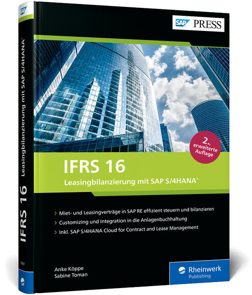 Bilanzieren Sie Miet- und Leasingverträge gemäß IFRS 16 und ASC 842 in SAP S/4HANA! Dieses Buch zeigt Ihnen, wie Sie SAP Real Estate Management (RE) für die Vertragsverwaltung und -bewertung einsetzen. Anhand von Praxisbeispielen lernen Sie die Vertragsbewertung kennen und erfahren, wie die Vertragskonditionen in die Bewertung einfließen. Diese 2. Auflage ist zu SAP S/4HANA aktualisiert und berücksichtigt neue SAP-Fiori-Apps sowie SAP S/4HANA Cloud for Contract and Lease Management.