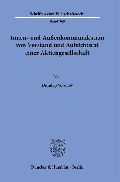 'Internal and External Communication of the Management and Supervisory Board of a Stock Corporation': The thesis examines the systematics, limits and scope of the communication skills of the management and supervisory boards of a German, independent, listed stock corporation. The aim of this work is to contribute to the definition of legal communication rules for the administrative bodies of a stock corporation by systematically analysing the subject of the investigation.