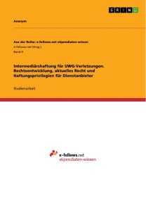 Studienarbeit aus dem Jahr 2020 im Fachbereich Jura - Zivilrecht / Handelsrecht, Gesellschaftsrecht, Kartellrecht, Wirtschaftsrecht, Note: 11,00, Universität Bremen, Veranstaltung: Wettbewerbsrecht, Sprache: Deutsch, Abstract: Die Arbeit untersucht Intermediärshaftung für UWG-Verletzungen. Zunächst wird auf die Rechtsentwicklung Bezug genommen, bevor das aktuelle Recht und die Haftungsvoraussetzungen aufgezeigt werden. In einem weiteren Schritt ist auf die Privilegierungstatbestände des Telemediengesetzes (TMG) einzugehen, unter dessen Schutz Internetdienstleister stehen können. Abschließend soll ein rechtspolitischer Rahmen Aufschluss zeigen, inwieweit die wettbewerbsrechtliche Intermediärshaftung effektiv und angemessen ausgestaltet ist.Ein Intermediär ist ein Vermittler. Er ermöglicht es anderen Personen, geschäftlich zu handeln. In der analogen Welt sind es unter anderem Telefongesellschaften, Post und Spediteure, die dafür sorgen, dass unmittelbar Handelnde ihre Tätigkeiten ausüben können. Die für digitale Märkte prägenden Unternehmen sind jedoch überwiegend Plattformen. Sie ermöglichen es, die Nutzer des Internets auf der ganzen Welt miteinander zu verknüpfen und schaffen die Voraussetzung dafür, Güter auszutauschen und an Dienstleistungen und Informationen zu gelangen.Ihre dominante Stellung ist aus dem Wirtschaftsleben nicht mehr hinwegzudenken. So gehörte eBay zu denjenigen Vermittlern, die durch ihre Kommunikationsreichweite einen einzelhandelsrelevanten Umsatz in Höhe von über elf Milliarden Euro in Deutschland erzielt haben. Soweit die Entwicklung aus wirtschaftlicher Sicht zu begrüßen ist, steht die rechtliche Bewertung jedoch vor einer Ambivalenz. Auf der einen Seite leisten Intermediäre einen notwendigen und erwünschten Beitrag für die Infrastruktur des Internets.Auf der anderen Seite eröffnen sie durch ihre Geschäftsmodelle eine Gefahrenquelle, denn vor allem im Internet können Rechtsverletzungen einfach und in einer Vielzahl verwirklicht werden. Da der unmittelbar Handelnde meist hinter der Anonymität des Internets verschwindet, ist es oft effizienter, den Intermediär in Anspruch zu nehmen. Immerhin sitzt dieser direkt an der Quelle und wird daher aus der ökonomischen Analyse des Rechts auch als cheapest cost avoider bezeichnet.