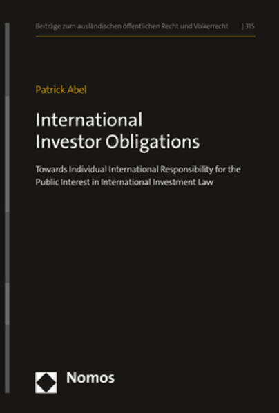 Abel, PatrickInternational investment law has been criticised for years: Do investors enjoy international rights without corresponding responsibility? This book challenges this view. On the contrary, treaty and arbitration practice is already subject to dynamics introducing international investor obligations, systematised by this book as direct and indirect obligations. Inter alia, these relate to the protection of human rights and the environment. This development may potentially reorient the field towards the principle of sustainable development and may even turn it into an international instrument to regulate investors' behaviour. The book situates these findings in the broader context of general international law.