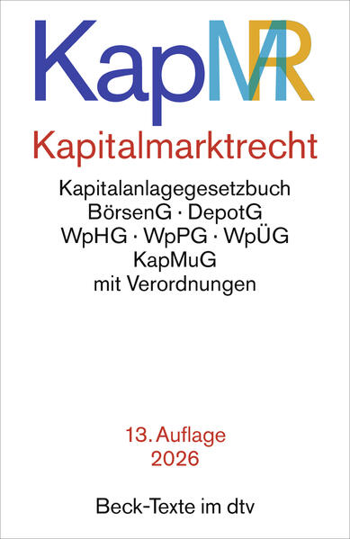 Kapitalanlagegesetzbuch, BörsenG, DepotG, WpHG, WpPG, WpÜG, KapMuG mit Verordnungen