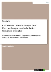 Studienarbeit aus dem Jahr 2020 im Fachbereich Jura - Öffentliches Recht / Staatsrecht / Grundrechte, Note: 1,7, , Veranstaltung: Hauptseminar Eingriffsrecht (Modul 2.4), Sprache: Deutsch, Abstract: Die in der hier vorzulegenden Arbeit zu behandelnden körperlichen Durchsuchungen und Untersuchungen durch die Polizei gehen regelmäßig, geradezu zwangsläufig, mit durchaus gravierenden Eingriffen in verschiedene Grundrechte der Betroffenen einher. Diese Arbeit widmet sich daher der an Aktualität nie einbüßenden Problematik der Abgrenzung beider Begriffe, unter besonderer Beachtung der Vorgaben der Gesetzgebung des Landes Nordrhein-Westfalen. Zunächst sollen eingangs die Begriffsdefinitionen geklärt werden und wichtige rechtliche Abgrenzungen zur Durchsuchung von Personen und Sachen auch in Unterscheidung zur Untersuchung eines Menschen gezogen werden. Diese Trennlinie ist vor allem vor den dann zu erörternden Eingriffen in die Grundrechte des Betroffenen notwendig. Diese Grundrechte werden im Weiteren gesondert vorgestellt und die Eingriffsdimension im Rahmen des Themas erörtert. Dies wiederum bildet gleichzeitig die Grundlage für einen Blick auf den Umgang und die Auslegung der körperlichen Durchsuchung und Untersuchung durch die Rechtsprechung, die sich, unabhängig von der Instanz, immer auch der Frage der verfassungsrechtlichen Rechtfertigung mindestens immanent widmet. Freilich lässt die Fülle an einschlägiger Rechtsprechung nur einen besonderen Einbezug der Rechtsprechung in Nordrhein-Westfalen zu, wobei sich dieser mit einer Dienstanweisung des PP Köln beschäftigen wird.