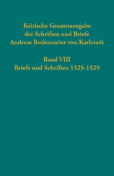 Band 8 der Karlstadtedition umfasst den Zeitraum 1525 bis 1529, der für den Protagonisten geprägt war von einer Suche nach einem neuen Betätigungsfeld nach der Ausweisung aus Kursachsen, klandestiner Tätigkeit als Prediger in Franken, Verfolgung und neuen Verwerfungen im Zuge des Bauernkrieges, einer reumütigen Rückkehr und einem Absturz in wirtschaftlich prekäre Verhältnisse unter Überwachungsbedingungen. Nachdem er im Jahr 1525 noch einige Schriften, die erneut die Abendmahlsfrage und die Rechtfertigung der eigenen Lehre zum Gegenstand hatten, herausgeben konnte, versiegte die literarische Produktion immer mehr. Dennoch versuchte Karlstadt noch in einer verzweifelten Lage, die von der Sorge um die alltägliche Existenz seiner Familie geprägt war, mit Luther in einen theologisch-gelehrten Austausch zu treten. Ein abgefangener Brief, den Karlstadt nach Schlesien gerichtet hatte, beendete den Kontakt beider endgültig. Karlstadt entzog sich einer Verschärfung der Überwachung durch vorübergehende Flucht nach Holstein und Ostfriesland, wo er sich sogleich erneut der Kirchenreform widmete.