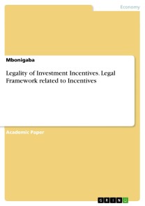 MbonigabaAcademic Paper from the year 2023 in the subject Business economics - Law, grade: A, INES Ruhengeri Institute of Applied Science, language: English, abstract: This study examines whether or not investment incentives are lawful under international law. In contrast with the mainstream literature, this study asserts that investment incentives are neither always efficient nor lawful. The study indicates that the legality of investment incentives depends on how they are used. They will be lawful if they comply with the principle of national treatment and MFN treatment; and will be unlawful if they violate those principles, especially if they benefit domestic investors over foreign investors or if they benefit investors of some countries over investors of other countries. Furthermore, performance requirements may be a test for the legality of investment incentives as host states are not free to impose any kind of performance requirements to the investors, as a condition to accord them incentives. Countries that are members of WTO are not allowed to use performance requirements which are prohibited by TRIMs Agreement like local content requirements, trade balancing requirements and export control requirements.