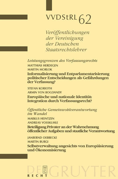 Februar 2003, ca. 568 Seiten, Veröffentlichungen der Vereinigung der Deutschen Staatsrechtslehrer, Bd. 62, Deutsch