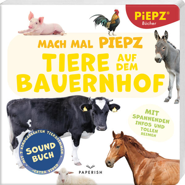 Entdecken Sie "Mach mal PIEPZ® - Tiere auf dem Bauernhof" – Ein Interaktives Abenteuer für Ihre Kleinen Verwandeln Sie das Lernen und Entdecken Ihrer Kinder in ein unvergessliches Abenteuer mit dem interaktiven Kinderbuch "Mach mal PIEPZ® - Tiere auf dem Bauernhof". Speziell für kleine Tierliebhaber ab 12 Monaten entwickelt, ist jedes Detail dieses Buches darauf ausgerichtet, die Fantasie zu beflügeln und einzigartige Tiere vorzustellen. Ihre Kinder können 7 liebevoll gestaltete Tierstimmen hören und dabei kindgerechte Reime und spannende Informationen entdecken. Ein Pädagogisches Vergnügen Das PIEPZ® Soundbuch des PAPERISH Verlags ist nicht nur unterhaltsam, sondern auch eine wertvolle pädagogische Ressource. Es enthält faszinierende Fakten zu jedem Tier, die Sie gemeinsam mit Ihren Kindern lesen und besprechen können, um deren Interesse und Neugier weiter zu fördern. Praktische Funktionen für Den Alltag Ausgestattet mit einem praktischen An- und Ausschalter auf der Rückseite und zwei Lautstärkestufen, lässt sich der Ton jederzeit anpassen, sodass das Buch auch in ruhigen Umgebungen verwendet werden kann. Zudem erfüllt es alle europäischen Spielzeugsicherheitsrichtlinien und wird regelmäßig überprüft, um maximale Sicherheit und Qualität zu gewährleisten. Spielerisches Lernen und Entdecken Ihre Kinder werden von "Mach mal PIEPZ® - Tiere auf dem Bauernhof" begeistert sein. Dieses Soundbuch weckt ihre Neugier für die Natur und die Welt der Tiere. Durch einfaches Drücken der Knöpfe können sie ihre Lieblingstiere entdecken und ihre Fantasie entfalten. Die Knöpfe sind speziell für kleine Hände konzipiert und leicht zu bedienen. Highlights im Überblick - Einzigartiges Soundbuch: Speziell entwickelt für Kinder ab 12 Monaten. - Höchste Qualität: Anspruchsvolle Fertigung und Herstellung für eine langlebige Nutzung. - An- und Ausschalter: Ausgestattet mit 2 einstellbaren Lautstärkestufen für eine angenehme Lautstärkeregelung. - Liebevolle Gestaltung: Enthält 7 kindgerechte Themenseiten, die mit Liebe zum Detail gestaltet wurden. - Spannende Infos: Jedes Tier wird mit interessanten Fakten vorgestellt, die das Lernen fördern. - Kindgerechte Unterhaltung: Lustige Reime begleiten die Tiergeräusche und sorgen für Unterhaltung. - Zusätzliches Video: Über einen QR-Code ist ein weiterführendes Video abrufbar, um das Erlebnis zu erweitern. Tauchen Sie ein in das interaktive Abenteuer von "Mach mal PIEPZ® - Tiere auf dem Bauernhof" und unterstützen Sie Ihre Kinder dabei, spielerisch zu lernen und die faszinierende Welt der Tiere zu erkunden!