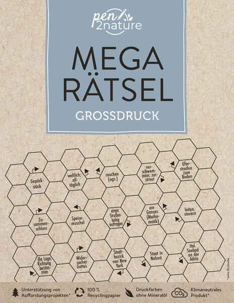 Nachhaltiger Rätselspaß in großer Schrift auf umweltfreundlichem Recyclingpapier