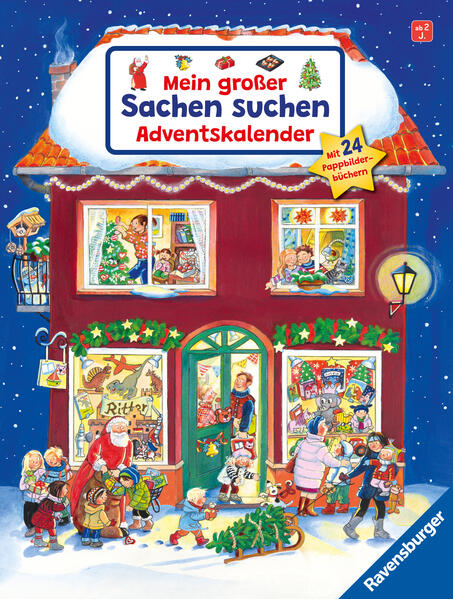 Hinter einem stimmungsvollen Weihnachtshausmotiv verbergen sich 24 Türchen mit kleinen Pappbilderbüchern aus der erfolgreichen "Sachen suchen"-Reihe. Neben allerlei Weihnachtsthemen gibt es zahlreiche Lieblingsthemen zu entdecken. So entsteht eine kleine Pappbilderbuch-Bibliothek, die nicht nur die Wartezeit auf den Weihnachtsabend verkürzt, sondern auch über die Weihnachtszeit hinaus ihren festen Platz im Kinderzimmer finden wird.