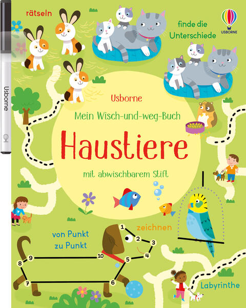 Eine Vielzahl an Labyrinthen, Zähl- und Schwungübungen sorgen für jede Menge Spaß. Zeige dem Kätzchen den Weg ins Körbchen, hilf dem Hund, den Hindernislauf zu gewinnen und finde die Unterschiede zwischen den beiden Pferden. Und falls doch mal was danebengeht: einfach wegwischen und noch mal versuchen.
