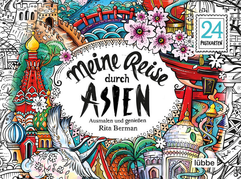 geht Rita Bermans Ausmal-Saga weiter nach Asien. Sie zeichnet die schönsten Motive aus Japan, China, der Mongolei und Zentralasien. Von kunstvollem Sushi mit Blick auf den Berg Fuji, traumhaften Stränden in Vietnam über die Chinesische Mauer bis zu orientalischen Basaren gibt es viel zu entdecken. Die Vielseitigkeit Asiens begeistert die Ausmal-Community einmal mehr. Die 24 schönsten Motive aus