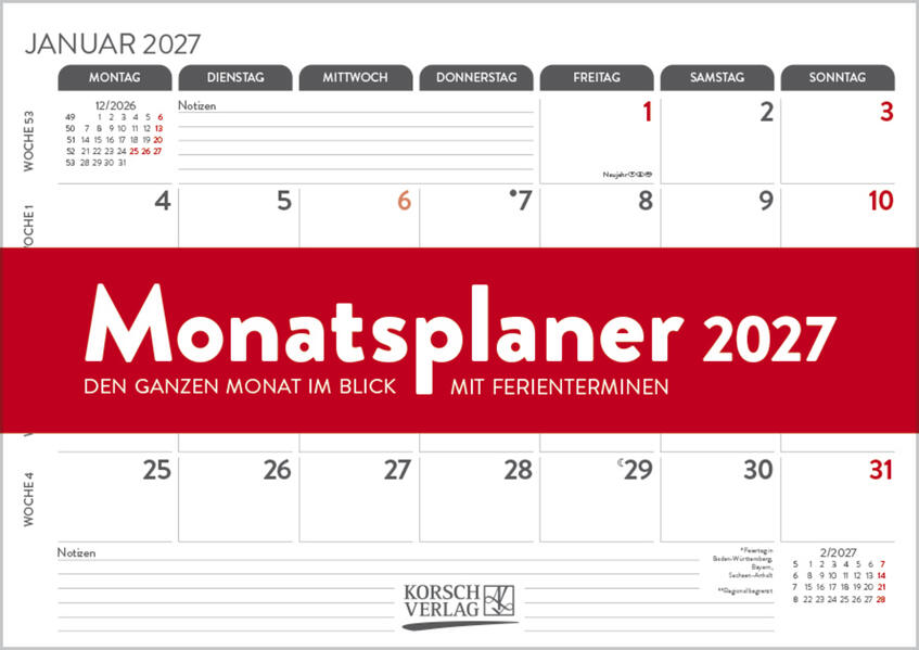 Monatsplaner 2027