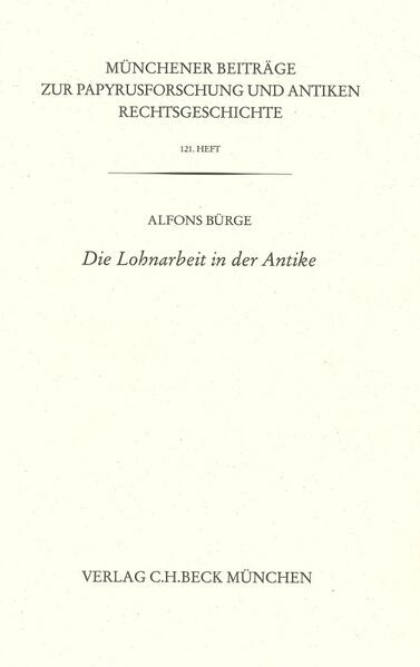 Münchener Beiträge zur Papyrusforschung und antiken Rechtsgeschichte / Münchener Beiträge zur Papyrusforschung Heft 121: Die Lohnarbeit in der Antike