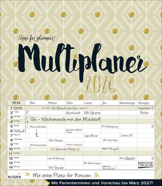 Korsch Multiplaner Time for Glamour - Großer Jahresplaner für Familien, WGs und Co