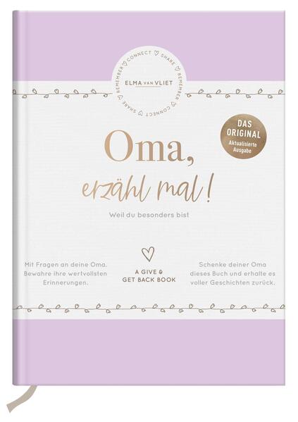 "Oma, erzähl mal!" ist ein liebevolles und besonderes Geschenk für jede Großmutter. Sie erhält die Gelegenheit, angeleitet durch Fragen das Wichtigste über ihre Kindheit, ihr weiteres Leben, ihre Person und ihre Sicht auf die Welt aufzuschreiben. Ausgefüllt wird das Buch zu einem wertvollen Erinnerungsbuch für die ganze Familie, das die Großmutter eines Tages ihrem Enkelkind zurückgeben kann. So werden alle ihre Erinnerungen für alle Zeit bewahrt.