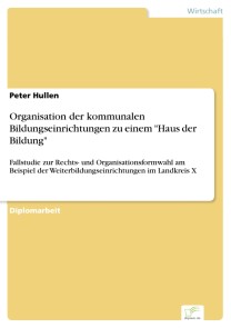 Peter HullenInhaltsangabe:Zusammenfassung:Gegenstand der Arbeit ist die Wahl einer optimalen Rechtsform für eine kommunale Weiterbildungseinrichtung einer niedersächsischen Landkreisverwaltung. Behandelt werden dabei die Einrichtungen der Musikschule und der Volkshochschule, die gegenwärtig in verschiedenen Betriebsformen geführt werden. Aufgrund von Sach- und Zweckmäßigkeitsüberlegungen erfolgt im Rahmen der Ausarbeitung eine Zusammenführung der Betriebe zu einem ?Haus der Bildung? in einer gemeinsamen Rechtsform.Nach Prüfung der rechtlichen Voraussetzungen sowie mittels sachlicher Einengung auf die entscheidungsrelevanten Rechtsformen kommen der Zweckverband, die GmbH und der Verein als zu untersuchende Organisationsformen in die engere Auswahl. Für sie wird eine Rechtsformenanalyse und eine sachgerechte Ermessensausübung anhand von Entscheidungskriterien vollzogen. Zum Abschluss erfolgt unter Berücksichtigung der zu erfüllenden Aufgabenbereiche und der Organisationsziele ein Bewertungsverfahren mit Hilfe einer Nutzwertanalyse. Im Ergebnis wird die optimalste und vorteilhafteste Rechtsform für das ?Haus der Bildung? herausgestellt.Inhaltsverzeichnis:Inhaltsverzeichnis:InhaltsverzeichnisIAbkürzungsverzeichnisIIIAbbildungs- und TabellenverzeichnisVAnlagenverzeichnisVIAllgemeines und aktuelle HinweiseVII1.Einleitung12.Ausgangslage und Darstellung der Ist-Situation der kommunalen Weiterbildung im Landkreis X32.1Musikschule X e. V.32.1.1Aufgabenbereich/-typisierung und Wettbewerbssituation32.1.2Rechtsgrundlagen und Organisationsstruktur42.1.3Haushalts-/Rechnungs- und Prüfungswesen52.1.4Vermögen, Finanzierung und finanzwirtschaftliche Lage52.1.5Steuersituation62.1.6Personalwirtschaft/Mitbestimmung62.2Musikschule W e. V.72.3Kreisvolkshochschule X (KVHS)72.3.1Aufgabenbereich/-typisierung und Wettbewerbssituation72.3.2Rechtsgrundlagen und Organisationsstruktur82.3.3Haushalts-/Rechnungs- und Prüfungswesen92.3.4Vermögen, Finanzierung und finanzwirtschaftliche Lage92.3.5Steuersituation102.3.6Personalwirtschaft/Mitbestimmung102.4Stärken-/Schwächen-Analyse der gegebenen Verhältnisse113.Anlass, Hintergründe und Ausgangsüberlegungen für die Untersuchung und Ziele der Rechtsformwahl123.1Begriffsdefinition Organisations-/Rechtsform123.2Zuordnung der Weiterbildung zum Bereich Kultur133.3Gründe und Motive für die Umwandlungsuntersuchung133.4Ziele der Rechtsformwahl194.Rechtliche Rahmenbedingungen und Grundlagen […]