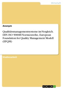 Studienarbeit aus dem Jahr 2017 im Fachbereich BWL - Unternehmensführung, Management, Organisation, Note: 1,7, Hochschule RheinMain, Sprache: Deutsch, Abstract: Seit den letzten Jahrzehnten hat das Qualitätsmanagementsystem für viele Unternehmen immer mehr an Bedeutung zugenommen, und viele namhafte Unternehmen haben sich von unabhängigen Institutionen zertifizieren lassen. In der vorliegenden Arbeit geht es zunächst um zwei Qualitätsmanagementsysteme, die ganz unabhängig voneinander entwickelt wurden. Das erste QM-System, die sogenannte DIN ISO 9000ff-Normenreihe, wurde in Großbritannien ins Leben gerufen, und das zweite QM-System, das Total Quality Management-System, wurde in den USA erfunden und später in Japan weiterentwickelt. Das Total Quality Managementsystem wurde später in das ganzheitliche europäische EFQM-Modell weiterentwickelt. Aufgabe dieser Hausarbeit wird es schließlich auch sein, diese zwei relevanten Qualitätsmanagementsysteme, also die DIN ISO 9000ff-Normenreihe und das EFQM-Modell vorzustellen und miteinander zu vergleichen, um festzustellen, wo es Unterschiede gibt, welche Vor- und Nachteile das jeweilige Qualitätsmanagementsystem aufweist und wo sich eventuell Überschneidungen ergeben. Aber zunächst wird auf die geschichtliche Entwicklung der Qualitätssicherungssysteme bzw. Qualitätsmanagementsysteme eingegangen. Danach geht es darum, den Begriff der Qualität zu definieren und weitere Begriffe, wie Qualitätskategorien, Qualitätsmerkmale usw. zu erörtern.