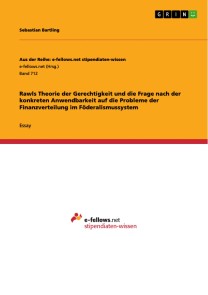Essay aus dem Jahr 2010 im Fachbereich Jura - Rechtsphilosophie, Rechtssoziologie, Rechtsgeschichte, Note: 1,0, Zeppelin University Friedrichshafen, Sprache: Deutsch, Abstract: In der aktuellen Situation des Länderfinanzausgleiches kann man aus finanzwirtschaftlicher Sichtweise etwas überspitzt von einer Art Perversion sprechen. Die reichen Länder sind demotiviert, da weiterer Erfolg lediglich von den ärmeren Ländern abgeschöpft werden würde und die Armen handeln irrational. Größere Erfolge ihrerseits müssten mit Transfereinbußen aus den Geberländern bezahlt werden, sodass immer häufiger der Ruf nach Finanzautonomie zu hören ist. Der im Jahre 2002 verstorbene Rechtsphilosoph John Rawls gilt als einer der größten Gerechtigkeitstheoretiker des 20. Jahrhunderts. In seinem 1971 erstmals veröffentlichten Hauptwerk „A Theory of Justice“ kreierte er eine Gerechtigkeitstheorie, welche auf die Idee des Gesellschaftsvertrages zurückgeht. Er konstruiert in einem Gedankenexperiment eine Entscheidungssituation, in der die Menschen über Grundrechte und –pflichten, sowie die Verteilung von gesellschaftlichen Gütern abstimmen. Rawls nimmt den beteiligten Personen die Kenntnis über ihre eigene Stellung in der Gesellschaft und zielt auf eine Einigung über die gerechteste Verteilung von Grundgütern ab. Die vorliegende Arbeit eröffnet eine neue Perspektive auf den aktuellen Länderfinanzausgleich durch die in Bezugnahme von Rawls Theorie.