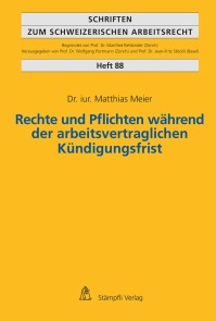 Matthias MeierDie Kündigungsfrist ist ohne Zweifel die konfliktanfälligste Etappe des Arbeitsverhältnisses. Die vorliegende Dissertation untersucht eine Reihe von besonders praxisrelevanten Fragestellungen zwischen Vertragskündigung und Austritt der Arbeitnehmerin.