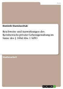Studienarbeit aus dem Jahr 2022 im Fachbereich Jura - Strafprozessrecht, Kriminologie, Strafvollzug, Note: 11, Gottfried Wilhelm Leibniz Universität Hannover, Sprache: Deutsch, Abstract: Diese Arbeit befasst sich zunächst mit der historischen Entwicklung des § 100d StPO, zeigt danach die verfassungsrechtlichen Grundlagen auf, untersucht die strafprozessuale Konturierung und die allgemeinen sowie speziellen Auswirkungen des Kernbereichs privater Lebensgestaltung.Heutzutage leben wir in einer Welt, die von Tag zu Tag immer schneller und vor allem immer digitaler wird. Die digitale Welt erobert dabei immer mehr und mehr unseren Alltag und wirkt auf viele Bürger bedrohlich. Ob die Debatten um Twitter, die Massen an Daten die durch Facebook abgeschöpft werden oder die neusten Social-Media Plattformen aus China. Vor allem deshalb haben wohl immer mehr Menschen den Wunsch nach Freiheit. gleichzeitig steigen jedoch auch die Rufe nach mehr Sicherheit.Höchster Maßstab der hierbei in einem Rechtsstaat iSd Art. 20 Abs. 3 GG zu beachten ist, ist aber vor allem, dass Verfolgung von Straftaten nicht um jeden Preis erfolgen dürfen. Aufgrund der besonderen Nähe zum Grundgesetz wird das Strafprozessrecht - wohl nicht ganz zu unrecht - häufig als angewandtes Verfassungsrecht bezeichnet. Auch deshalb hat das BVerfG einen Kernbereich privater Lebensgestaltung entwickelt, der heute in § 100d StPO niedergeschrieben ist.
