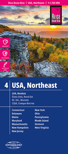 Hochreißfeste und 100% wasserfeste Landkarte "USA, Nordost" aus der Serie world mapping project, erschienen im Reise Know-How Verlag.